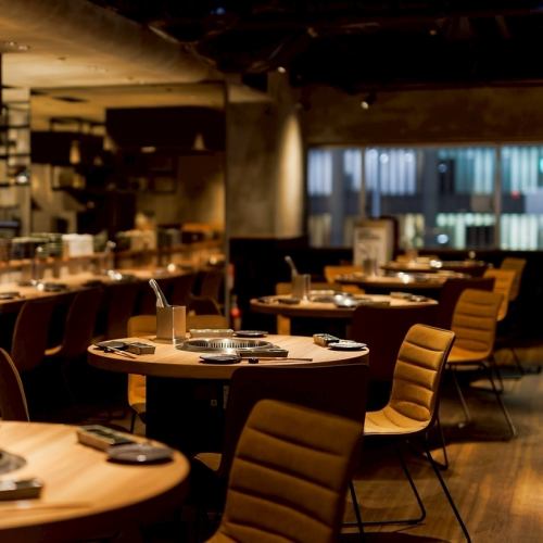 某有名デザイナー監修 ライブ感あるオープンキッチンや広々とした高級感あふれる店内でごゆっくりお過ごしください!【高槻/高槻市/焼肉/高槻駅/高槻駅/食べ飲み放題/高槻市駅/高槻市駅居酒屋/ランチ/高槻 焼肉/食べ放題/牛角/あたぼうや/女子会/送別会/歓迎会】